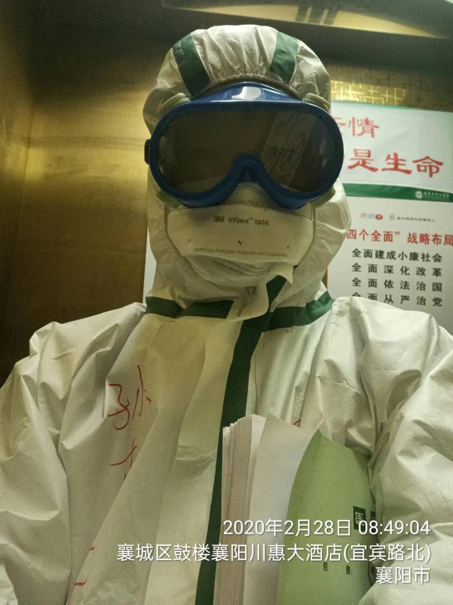 因疫情的发展,中心医院东津院区2号病房楼发热患者很快收治满员,我首先被安排名人城市隔离救治点从事一线救治工作,值班时穿着密封的隔离衣和戴着护目镜,当时5度气温仍然会冒汗,当工作八小时不吃不喝不排,下班摘下护目镜时,护目镜的两侧镜框前方积了足有10ML的液体,凌晨下夜班后一碗泡面就觉得是那么的美味可口,也让我体会到日常自由健康的生活是多么的来之不易。作为医务工作者,在大疫当前祖国和人民的需要,就是我义不容辞的责任和勇往直前的动力。我参与了此次抗疫,我才会以后门诊工作时更踏实的面对家乡的父老,更不惭于家乡人民的养育之恩。