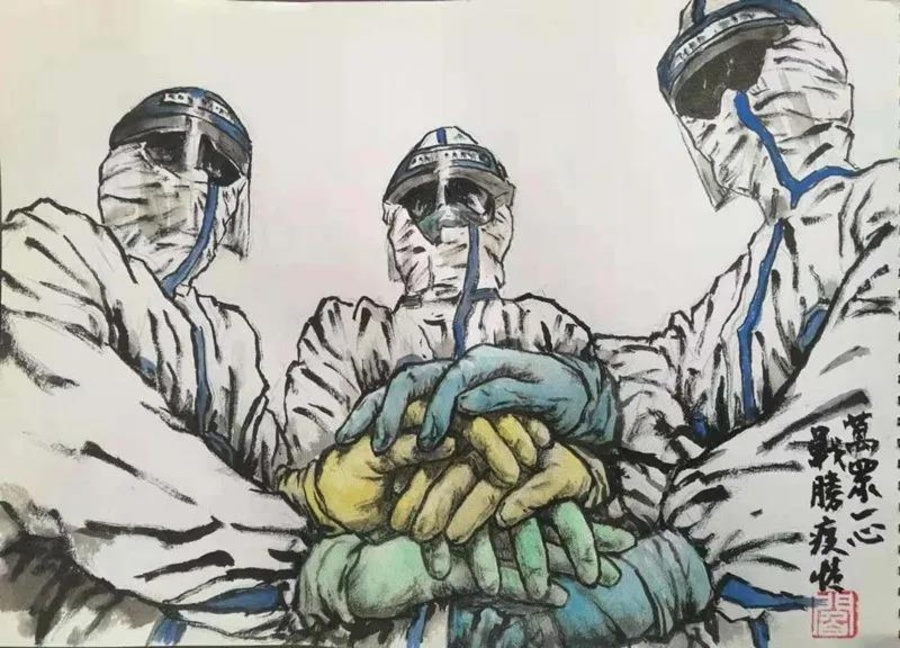 新冠肺炎疫情发生以来,九三学社社员中的文化工作者、文艺爱好者,感动于全国上下抗击新冠肺炎疫情所展现出的众志成城和医护人员的家国情怀,纷纷用绘画、书法、诗词、歌曲等形式,讴歌白衣战士,坚定必胜信念,凝聚人心力量。