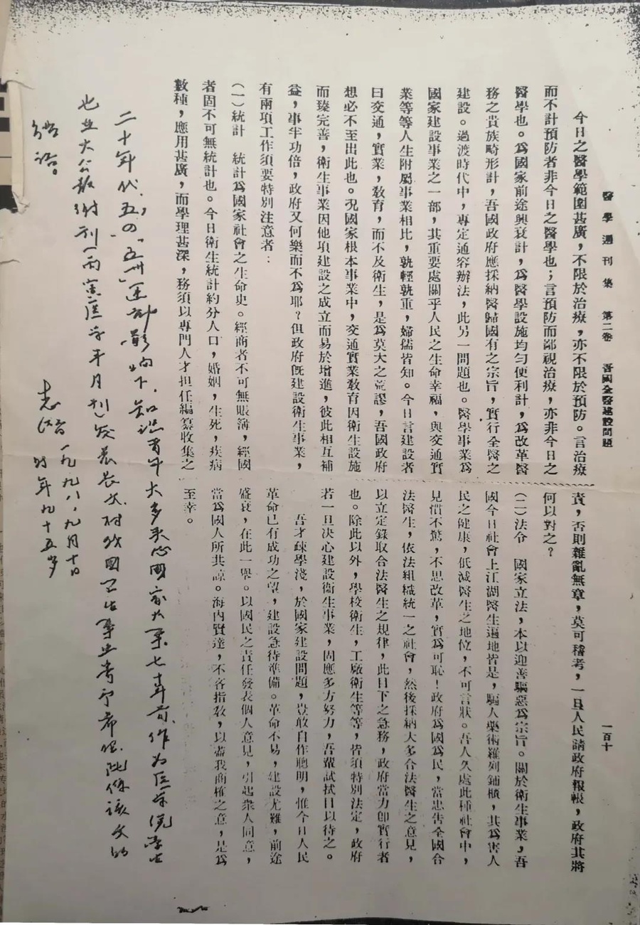 “今日之医学范围甚广,不限于治疗,亦不限于预防。言治疗而不计预防者非今日之医学也;言预防而鄙视治疗,亦非今日之医学也。”