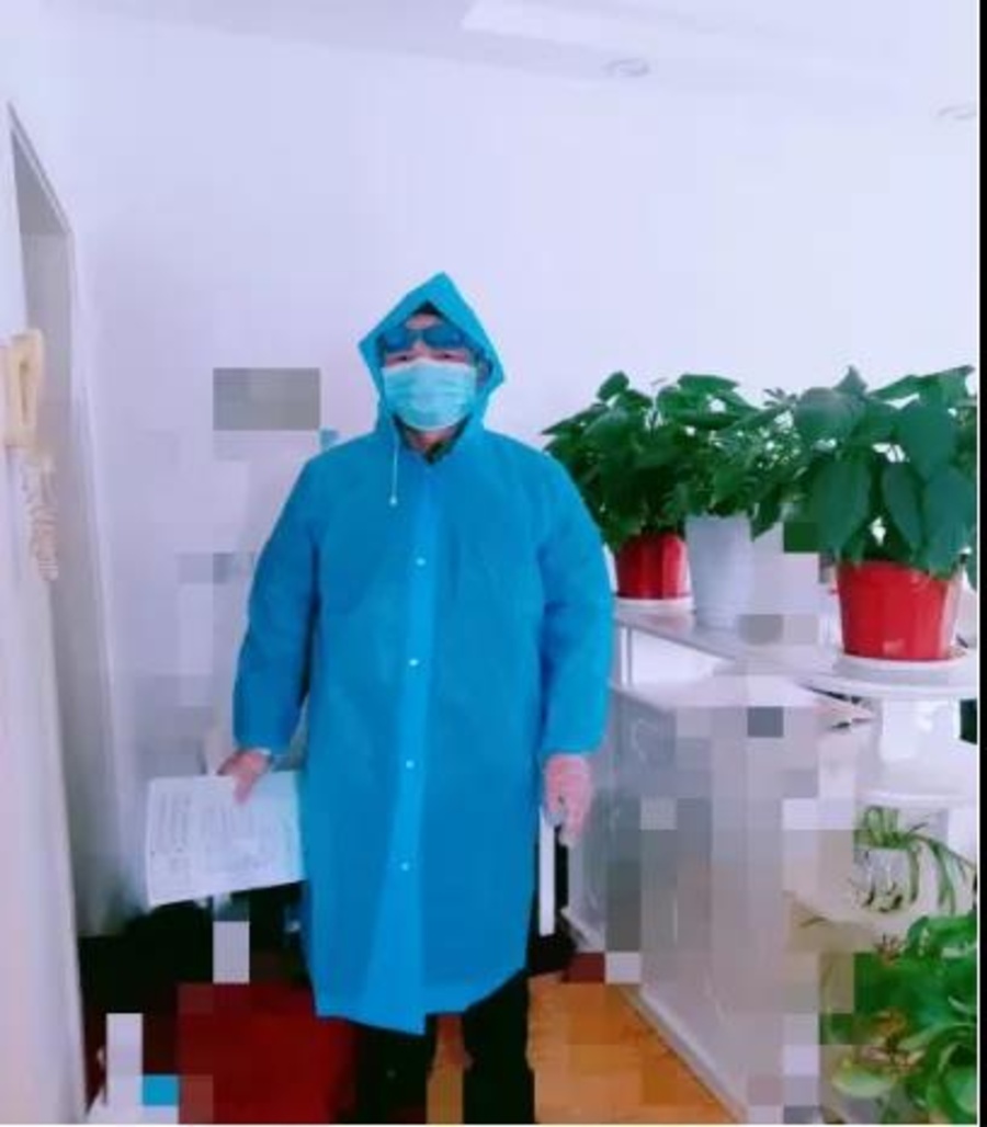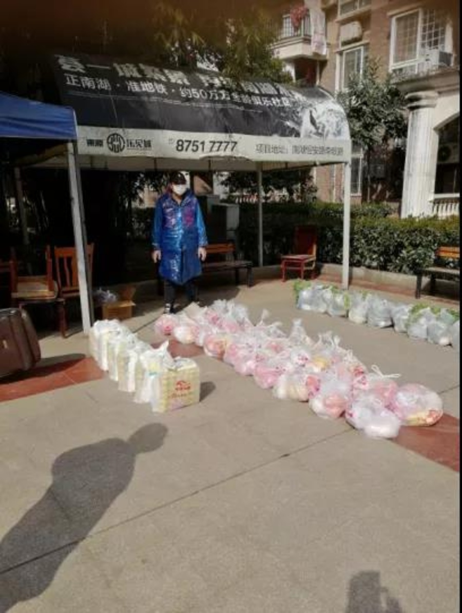 穿着不透气的防护服,戴着口罩,一趟趟地爬楼送菜,呼吸困难,汗流浃背,所以从第二次送菜开始,防护服里就只能穿一层单衣。居民中有些老人用的是老年手机,不知怎么团购。我们就找物业要来花名册,一家家打电话核实家庭成员,确定了有244户家庭有人居住,有31户是空巢老人或重病家庭,志愿者将31户分片包干,我负责的4户全是空巢老人。我一家家上门联系,问到了老人子女的电话,将子女拉入小区业主群,由子女团购,我送菜上门。同时定期询问老人的常用药吃完了没有,并出门给老人买药。