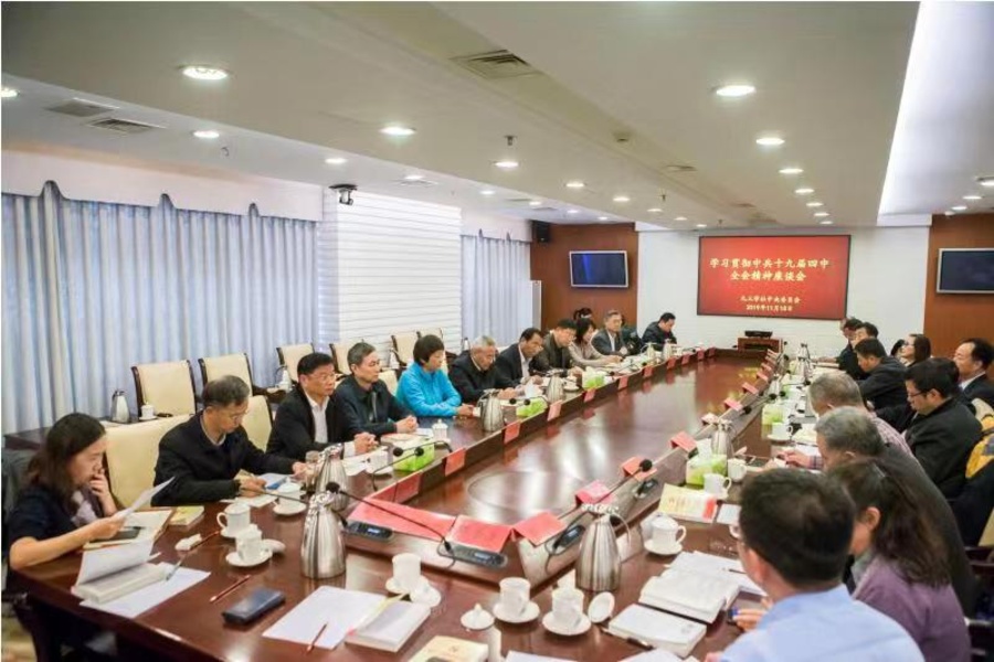 11月18日,九三学社中央学习贯彻中共十九届四中全会精神座谈会在北京召开。九三学社中央常务副主席邵鸿出席会议,并受武维华主席委托发表讲话。九三学社中央副主席丛斌主持会议,副主席印红、刘忠范出席会议。