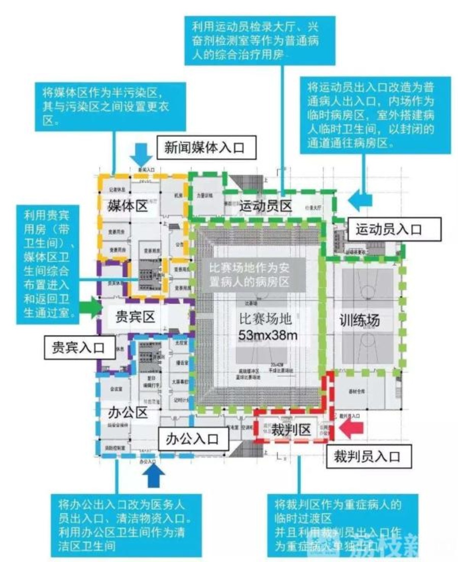 2月26日,江苏住房城乡建设厅下发了《公共卫生事件下体育馆应急改造为临时医疗中心设计指南》。