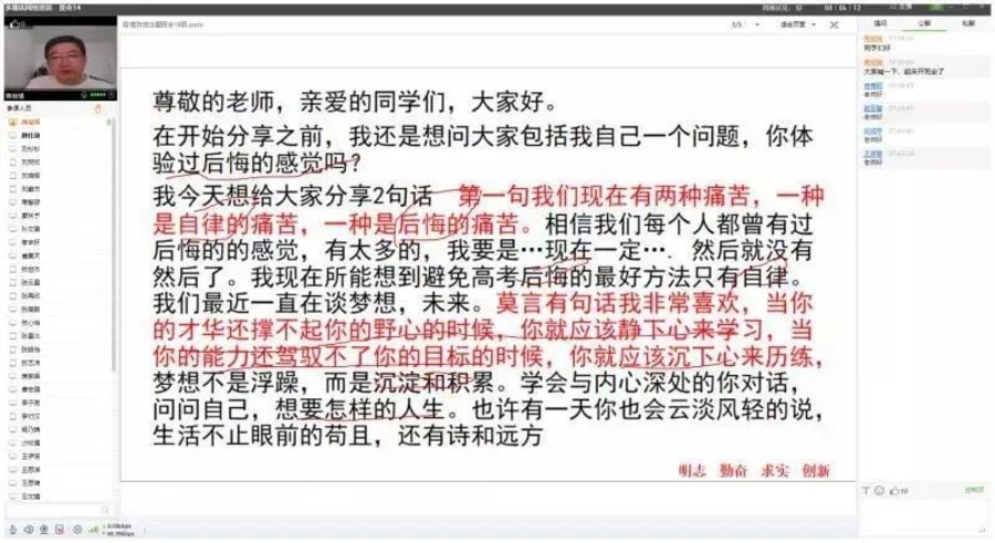 由于不适应通过摄像头和学生们交流,坐在电脑前的他们往往会有些羞涩,昔日讲台上侃侃而谈的自信突然消失了。但是,他们没有退缩,而是克服困难,继续用语言播种、用鼠标耕耘。