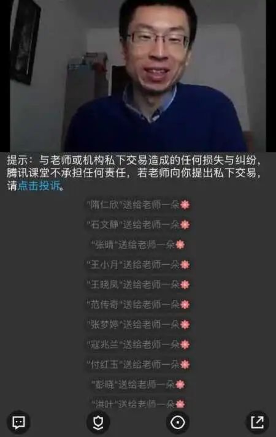 【以前是老师给学生们分发小红花,如今屏幕上学生们送的一朵朵小花,则是代表了学生自己最大的敬意。李亮说,最开始收到这些鼓励的小花,内心还是美滋滋的。