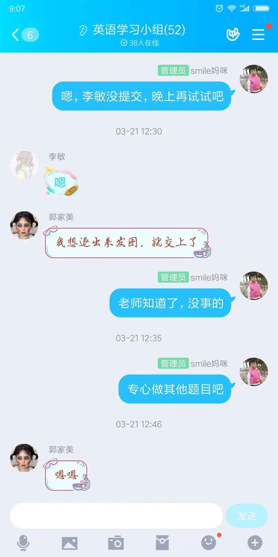 张玉静老师及时向家长反馈学习成果