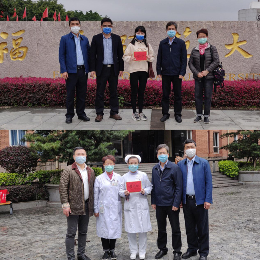 省政协副主席、九三学社福建省委主委洪捷序十分关心参加援鄂医疗队的社员情况。社省委作出了对援鄂社员“一帮一”机制工作安排,指派专人一对一联系援鄂社员及其家属,随时了解他们的工作和生活情况;通过社省委网站和微信公众号、社中央网站和微信公众号、团结网宣传他们的事迹。九三王选关怀基金会给每个援鄂社员颁发了慰问金。九三学社武汉市委为他们送行。九三学社中央已经印发文件,要专门表彰援鄂的社员,号召全体社员向他们学习。