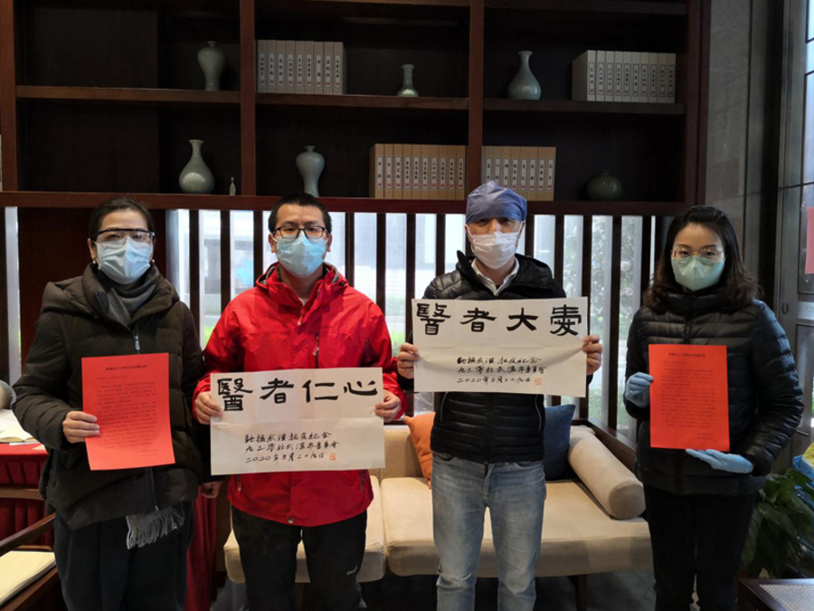 2020年3月30日九三学社武汉市委为圆满完成援鄂任务的杜厚伟(左三)和陈德招(左二)送行