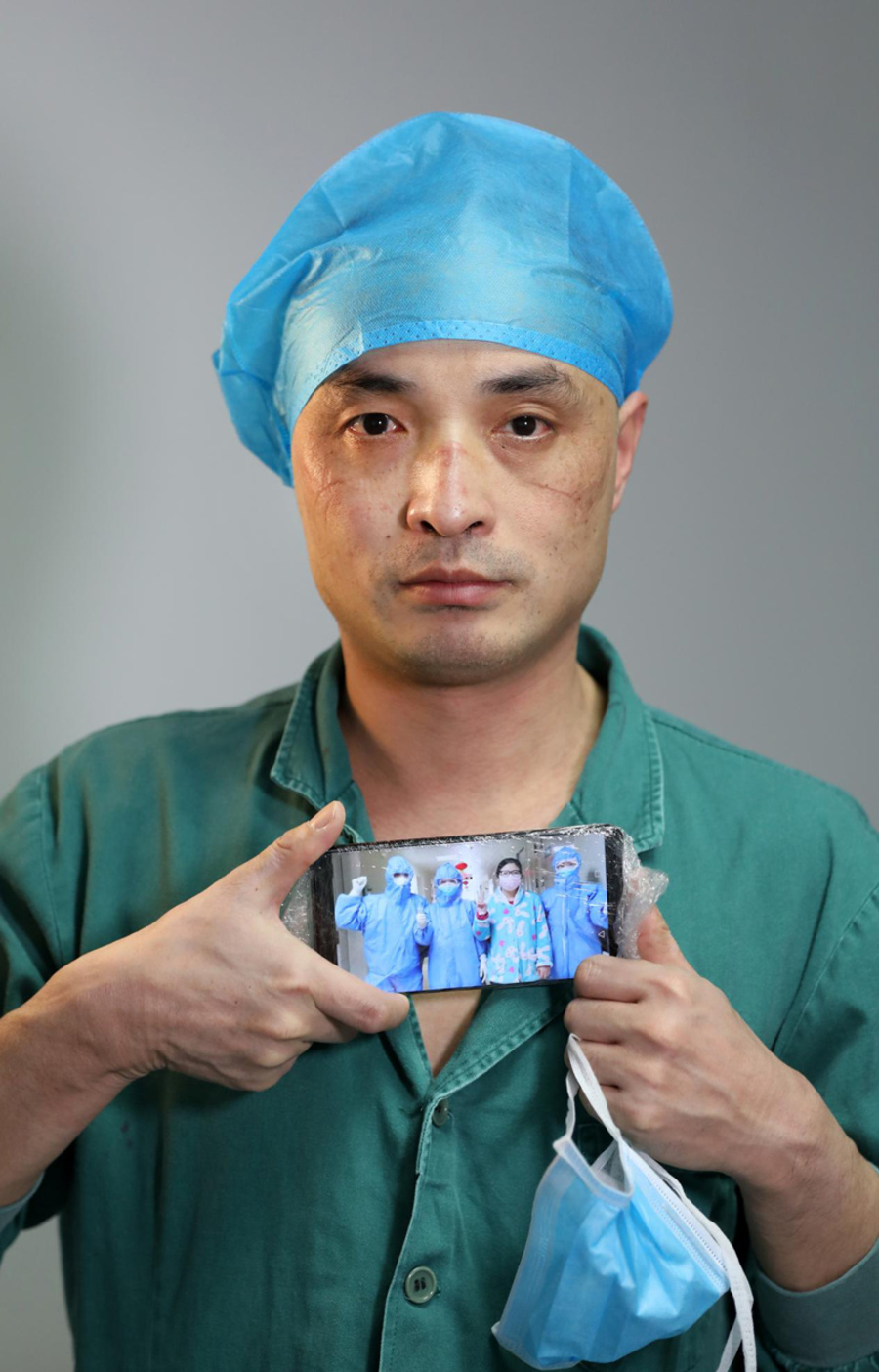 2020年3月3日杜厚伟在武汉重症病房结束一天的工作,脱下防护服和口罩的瞬间