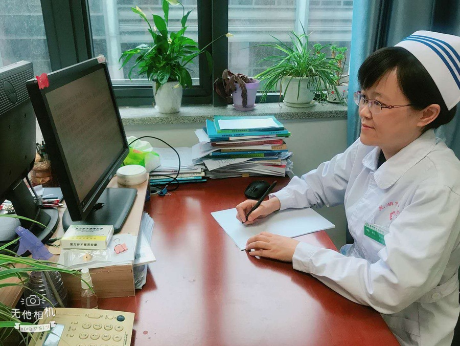 九三社员、安徽省芜湖市中医院护理部主任梅莉参加网络课堂学习。她曾在疫情期间培训护士支援湖北抗疫一线。
