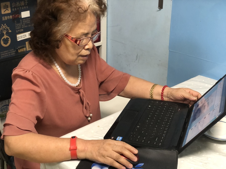 73岁的四川省德阳市退休社员、四川省工程职业技术学院教师王修玉参加网络课堂学习。