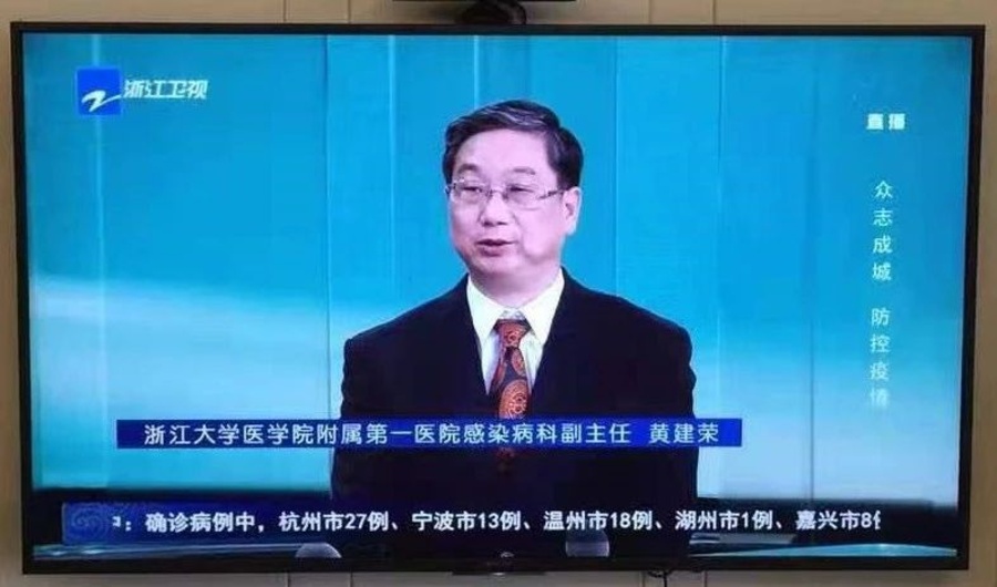九三学社浙江省委委员、浙江大学传染病诊治国家重点实验室副主任黄建荣除了做好院内诊治,还作为省抗击新型冠状病毒肺炎专家组成员,参与制订全国诊治指南;指导全省定点医院诊治病人(包括赴温州确诊全省第一、二例病人);赴卫健委机关等地开展培训;作为省卫健委指定的媒体发言人接受浙江电视台、钱江视频等媒体采访,向大众讲解科普相关知识。