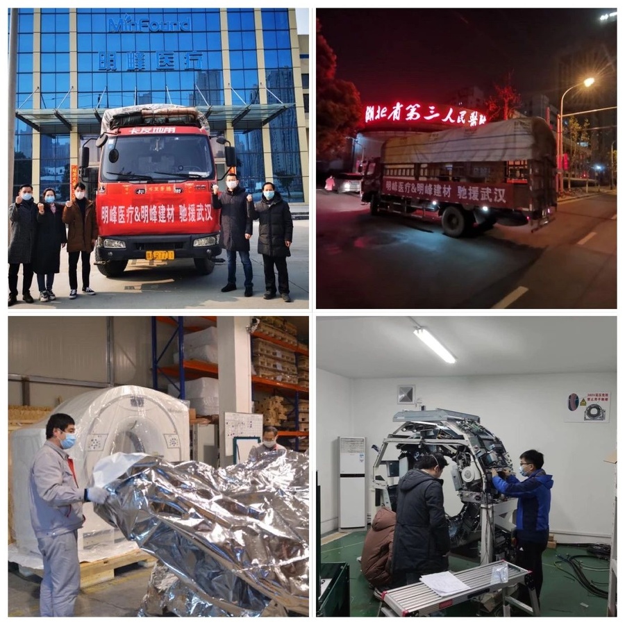 面对疫情,公司员工提前结束假期,立即成立“明峰医疗应急小组”,全力保障已安装的医院设备正常运行。根据疫情特点,创新研发,打造新型应急专用CT装置方舟CT,具有车载CT的机动性、灵活性、有效性、低剂量、网络化等作用和功能,能够赶赴疫情现场,独立于医院之外,保护易感人群。