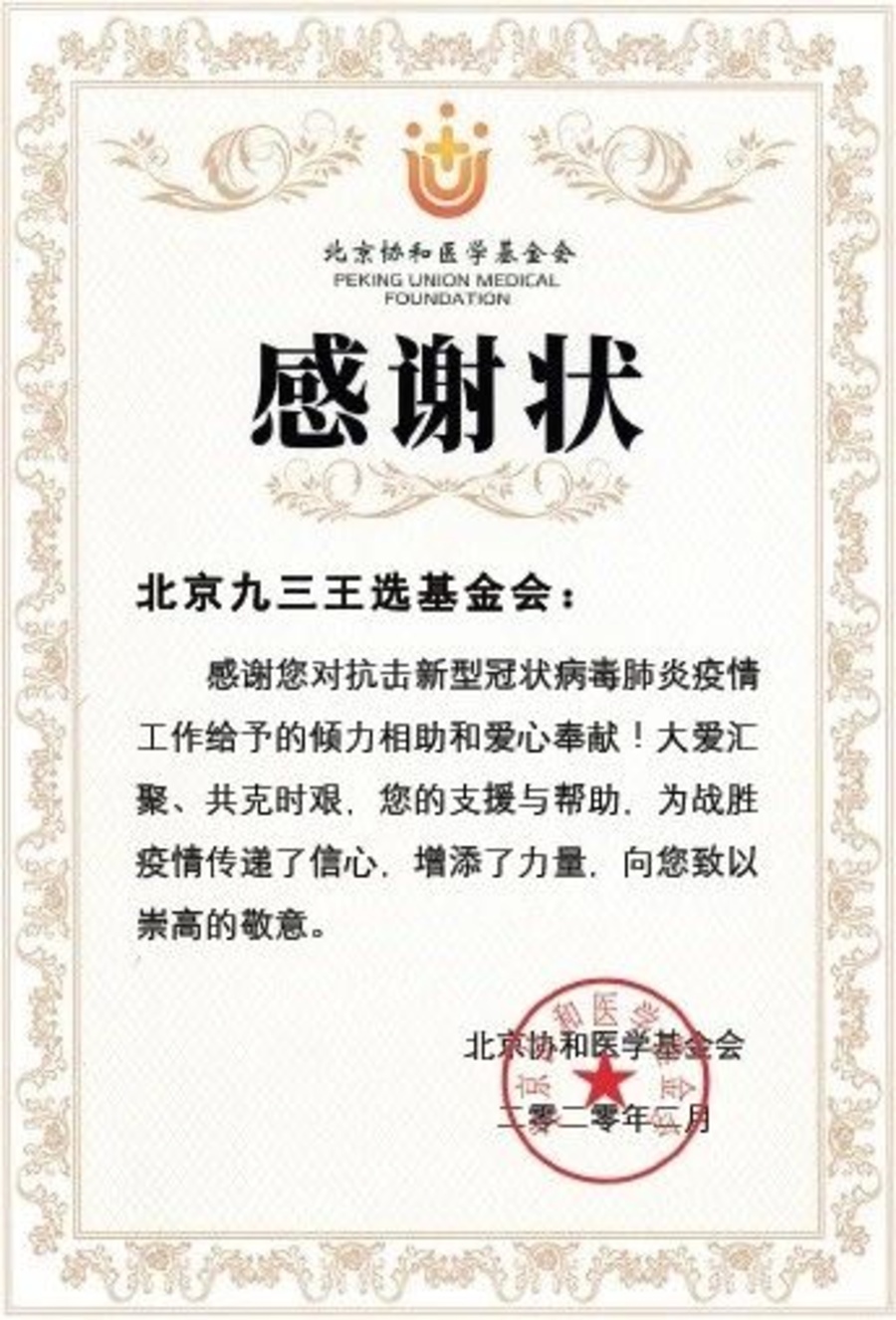 资助武汉市第七医院、武汉同济医院、武汉协和医院、武汉商职医院、武汉大学人民医院、武汉市武昌医院、武汉亚洲心脏病医院、武汉儿童医院、武汉大学中南医院抗疫一线受感染的医护人员102人。其中包括已去世的武汉市武昌医院护士柳帆女士、院长刘智明先生,向他们表达了九三王选关怀基金会的温暖和敬意。