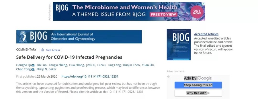 近日,重医附一院产科团队在国际妇产科领域顶级期刊British Journal of Obstetrics and Gynaecology (BJOG,英国妇产科杂志,IF:5.193)上发表题名“Safe Delivery for COVID-19 Infected Pregnancies”(妊娠合并新冠感染的安全分娩)的文章,和全球医务工作者分享来自中国产科专家的经验和临床诊疗方案。漆洪波教授为本文第一作者和通讯作者。