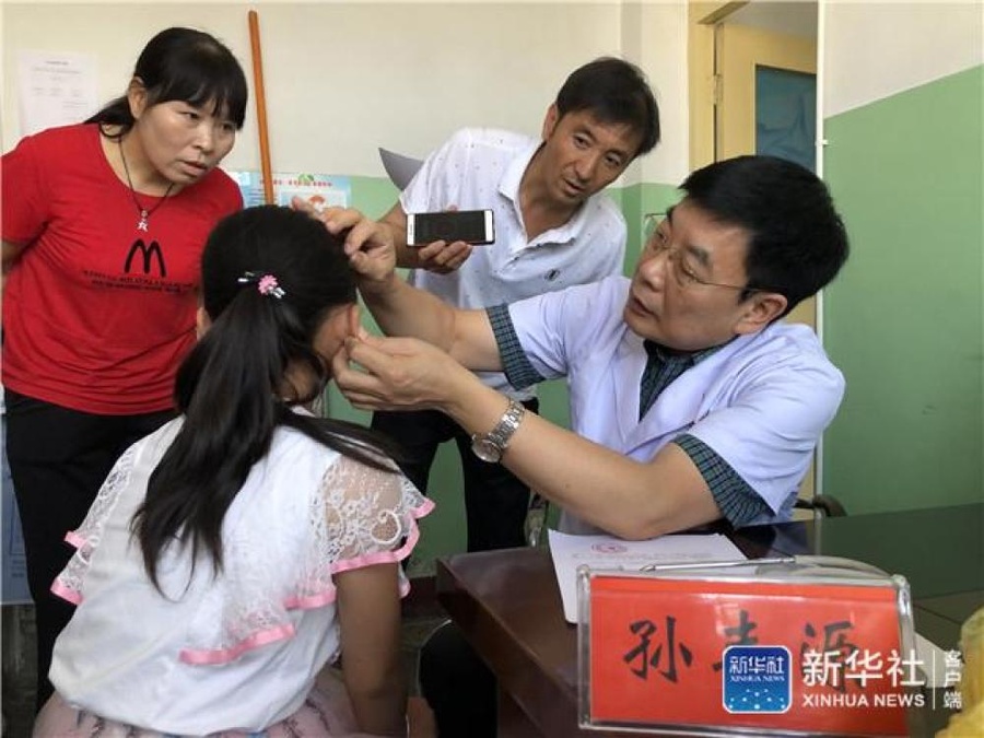 2019年全国两会后,作为全国人大代表和九三学社天津市委员会副主委,孙丰源先后赴四川广元市、甘肃环县等偏远地区调研。他和同事们深入学校、医院,了解青少年用眼情况,给青少年讲解保护眼睛的有关知识,也在医院进行义诊,最多时一天给200多位患者看病。