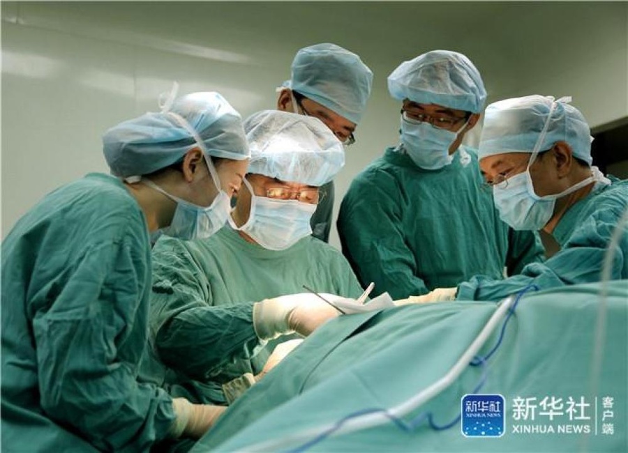 孙丰源(左二)在天津市第一中心医院进行手术(2013年11月1日摄)。新华社发