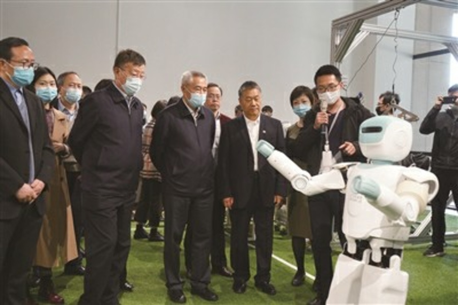图为3月29日,九三学社中央常务副主席邵鸿率调研组在浙江之江实验室开展党派重点考察调研。