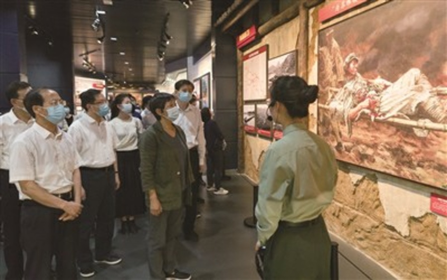 图为6月4日,九三学社中央副主席印红率社中央常委赴湘江战役纪念馆开展党史学习教育现场教学活动。