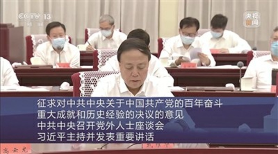 图为9月10日,九三学社中央主席武维华在中共中央举行的党外人士座谈会上,就征求对中共中央关于中国共产党的百年奋斗重大成就和历史经验的决议的意见发言。