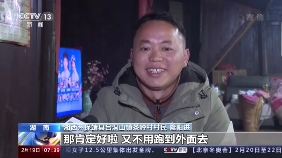湖南湘西州保靖县吕洞山镇茶岭村村民 隆阳进:(一年收入)大概有10多万(元)吧,肯定好啊,又不用跑到外面去,在家可以一家人团团聚聚的。
