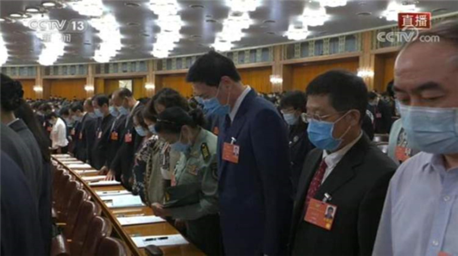 2020年全国政协十三届三次会议开幕时,委员们为新冠肺炎疫情牺牲烈士和逝世同胞默哀了一分钟