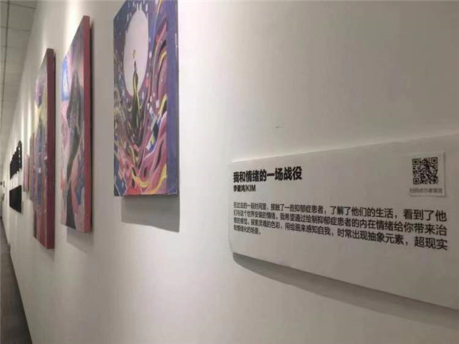 宛平南路600号画廊展出的画作,有不少表现抑郁症主题的(徐惠芬摄)