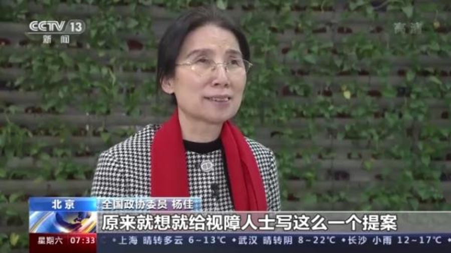 全国政协委员、中国科学院教授杨佳,是一位已经连续履职15年的“资深委员”,也是一位视障人士,她说“可以看不见,但不能没有见地;可以没有视野,但不能没有眼界”,她积极为残障人士“代言”,为听障群体呼吁在电视直播中增加字幕,助力推动无障碍环境建设,这些提案都得到了有效的落实和推进。