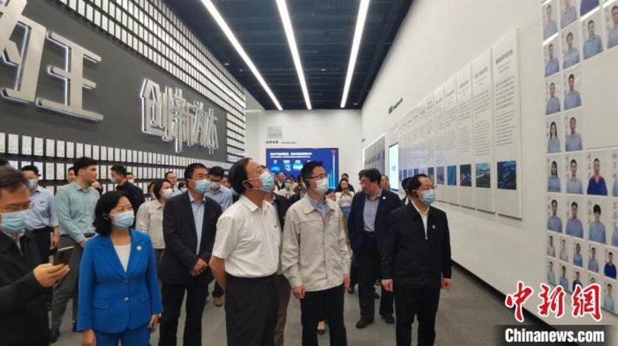 九三学社中央常务副主席邵鸿率调研组赴辽宁开展重点考察调研。图为调研组在沈阳鼓风机集团有限公司调研。 韩宏 摄