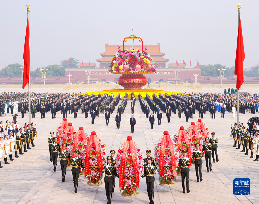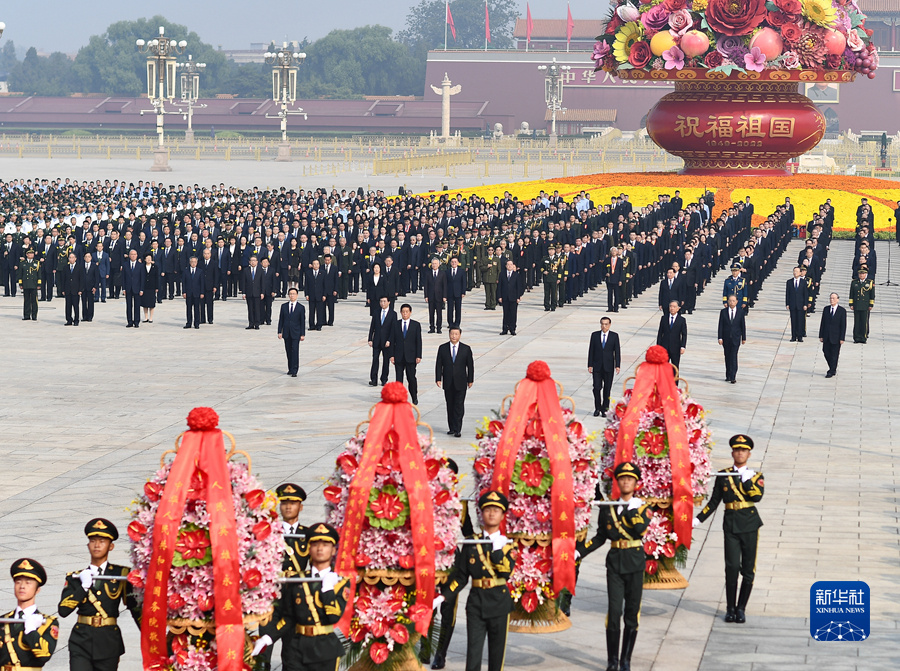 9月30日上午,党和国家领导人习近平、李克强、栗战书、汪洋、王沪宁、赵乐际、韩正、王岐山等来到北京天安门广场,出席烈士纪念日向人民英雄敬献花篮仪式。新华社记者 黄敬文 摄