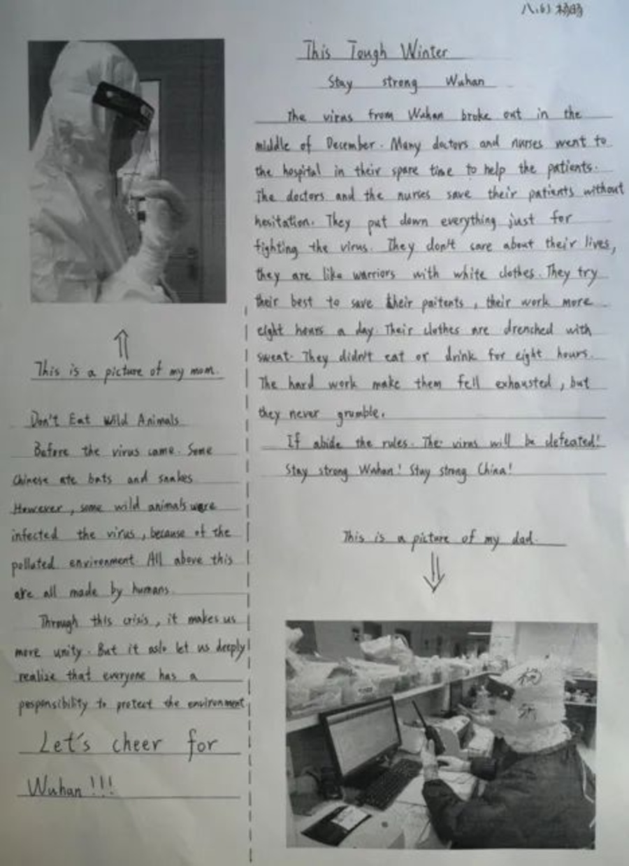 抱着勇往直前的信念去重症病房前,杨乐对儿子说:如果万一爸爸遇到不测,作为小男子汉,你要照顾好妈妈和家里。杨乐的妻子也是华科附属协和医院重症医学科的医生,夫妻两人双双奋斗在抗疫前线。他们的儿子写了一篇文章,记录父母的工作。杨乐说:疫情起始,感觉孩子一夜之间长大了,懂事了。