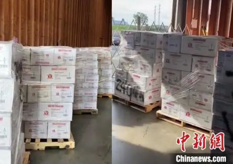 海外一处仓库。360公益基金会全球寻购,在当地华人帮助下,采购到一批防护服,并准备发往中国。(360供图)