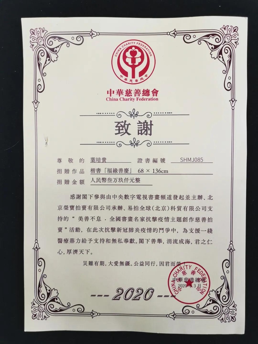 《福缘善庆》,书画频道和荣宝斋义卖书法是叶培贵教授所从事的专业,诗词也是他的兼擅。初步统计,从1月25日至4月19日,他为抗疫工作创作了大约50件书法作品,写作了表达抗疫情感的旧体诗(含联句)43首,诗书也成为他的抗疫利器。