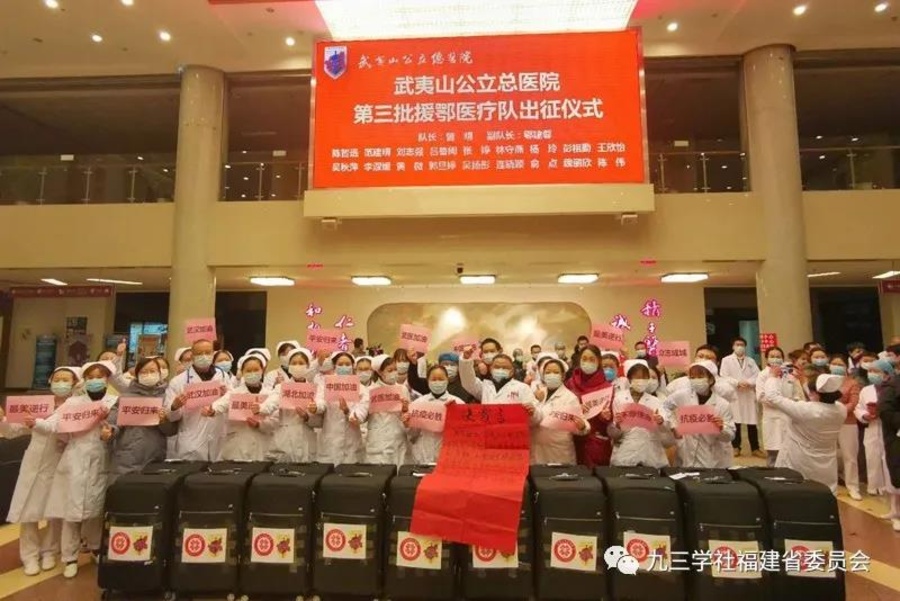 2月20上午6点半,由武夷山公立总医院重症医学科、呼吸与危重症医学科、护理等20人组成的南平市第四批(福建省第十一批)援助湖北医疗队从武夷山出发,奔赴战“疫”最前线——武汉金银潭医院重症病房抗击疫情。九三学社社员、武夷山公立总医院公卫保健部部长、武夷山市中医院执行院长陈智远便是这批“最美逆行者”中的一员。
