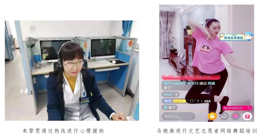 还有社员利用专业及特长,通过心理援助热线、“空中课堂”教学、文化作品创作,表达祝福与感动,鼓舞群众士气,坚定必信念。