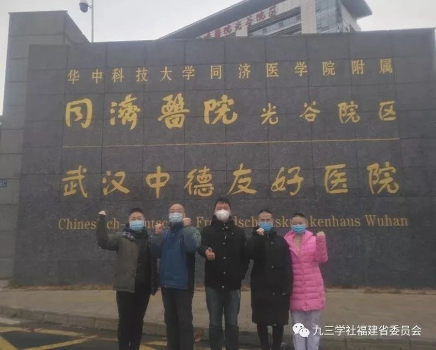 2月13日,杜厚伟随福建省援助湖北应对新冠肺炎疫情医疗队驰援武汉。福建医大九三的微信群里,同仁们的一声声“致敬”“保重”,向杜厚伟、陈德招表达了九三人最衷心的祝福和祝愿。杜厚伟在征程路途中给大家回话:“待到疫情破除日,我们福建再相聚!”