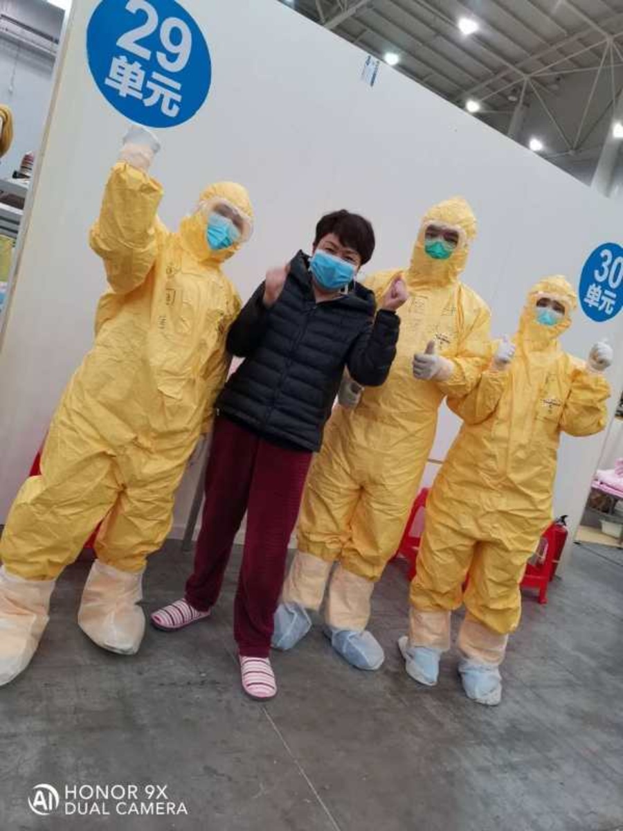 第二次入舱工作,给我的感觉截然不同。通过对流程和制度的完善与规范,加上大家不断加强自身学习,在入舱和出舱穿脱防护服时都十分的熟练和规范,在舱内工作时医护分工、一线二线分工都十分的明确,工作井然有序。期间有个小插曲还让我很暖心,一位四川彭州籍的四十多岁女性患者(山东医疗队负责病区患者,已在武汉定居),知道我们是四川来的,主动过来和我们聊天,说和老乡在一起聊天很亲切,从她的自述中我们得知,她和丈夫都是新冠肺炎患者,可不幸的是她丈夫是重症,已于几天前去世了,我们只能安慰和鼓励这位大姐,但大姐说她看开了并且会积极配合治疗,争取早日出院,并向我咨询了一些用药情况、复查及出院的流程,我都给予一一解答并做了一些生活上的指导,最后她还主动提出和我们拍照留念。我在想,如果所有新冠肺炎的患者都像这位大姐一样拥有积极乐观的心态、积极配合治疗,那么打赢这场战“疫”还会远吗!所以在今后的工作中我会多了解新冠肺炎病人的心态,多做心里疏导,多给予安慰与鼓励!