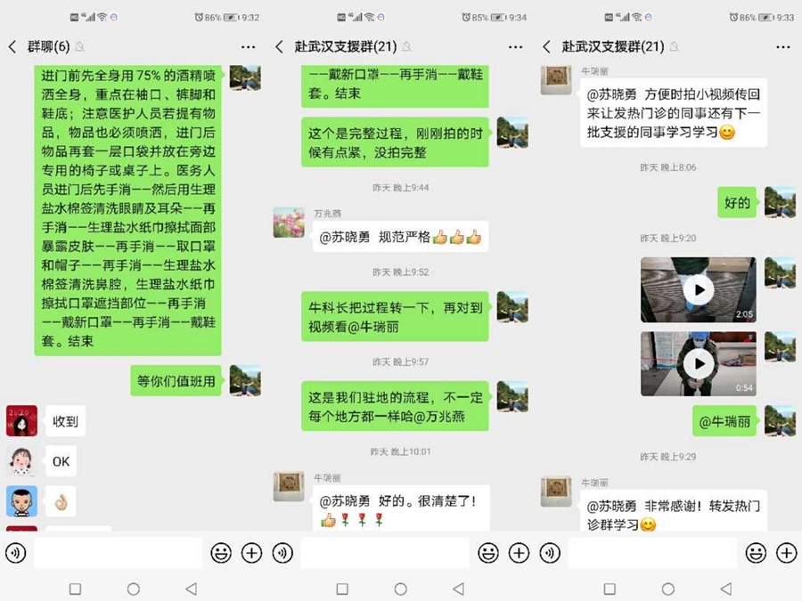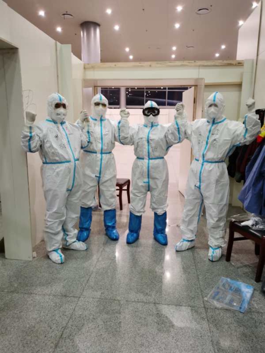 第一次入舱工作就这样有惊无险的度过了,之后大家都有了第一次入舱工作的经验,我们的工作微信群里也由此炸开了锅,相互之间不停的讨论和交流心得,同时也向各自的领队反应工作中发现的问题及不足,都在积极的建言献策。医疗队里负责管理、医疗、护理、院感等工作人员的效率是十分的高,在短短两三天的时间,结合之前的规范、流程及大家的建议,很快进一步完善和规范了相关流程及制度,如穿脱防护服流程、医护人员分工及排班制度、分诊及转诊制度、车辆调度、出院流程等等。