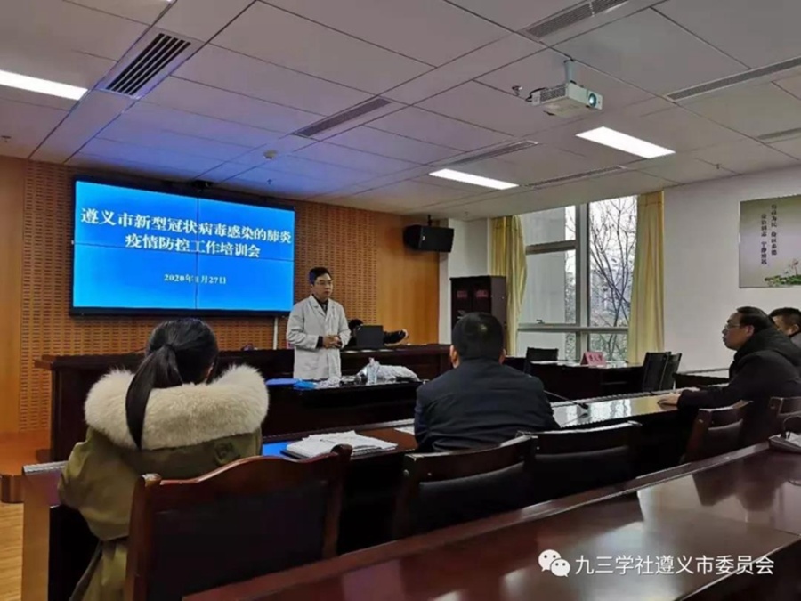 遵义市第一人民医院作为市级定点医院,承担的医疗任务繁重。九三学社遵义市第一人民医院委员会的社员们纷纷写请战书,要求取消休假,战斗在防控救治一线。社遵义市第一人民医院委员会主委安文洪,社员籍龙江,担任着遵义市防控办及总值班和遵义市第一人民医院防控办及总值班任务一直在抗击疫情第一线战斗。安文洪还受市卫生健康局委派,任遵义“小汤山”救治医院感染管理科主任,全面负责市第一人民医院、汇川分院及遵义小汤山医院感染防控工作,同时承担全市感染防控指导培训,并参加省防控督导组赴正安、道真、播州,兴义、毕节定点重症救治医院等防控一线检查指导防控工作。