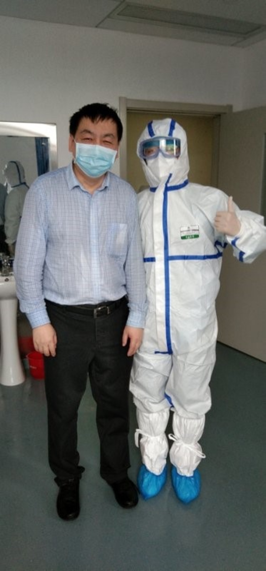 疫情无情,人间有爱。医科院九三社员们疫情期间能征善战、坚于职守,值得托付。1月18日,中国医师协会重症医师分会会长、北京协和医院内科重症医学科主任、北京协和医院支社社员杜斌,作为国家高级别专家组成员赴武汉调研疫情防控、指导新冠肺炎重症病例救治,为国家提供治疗策略咨询及应对措施建议。1月19日,高级别专家组连夜返回北京,第二天就向公众示警,肯定新冠病毒人传人。此后3个多月,杜斌主任从武汉金银潭医院重症病房的策划和建立,到同济医院中法新区临时ICU的建设和运行,从暴露风险最大的气管插管,到一针见血的中心静脉穿刺,从武汉各危重症病房之间的巡诊指导,到国新办新闻发布会上、国际视频交流中的从容应对与专业分享,他都以“严谨、求精、勤奋、奉献”的协和专业精神身体力行,冲锋在前。“只有到床旁去,才知道病人的真实情况”,这是一个纯粹医生的责任感;给病人气管插管,他带头上阵,临危不惧,“如果我不做,我就没办法要求别人去做……,只有你去做了,大家才会知道这是医生护士能做到的,也是应该做的事情”;帮护士给病人吸痰、换床单,用行动表明“我和你们在一起”;“重症治疗不放松,我们最后撤”,这是他给武汉新冠肺炎患者的承诺和定心丸;医者仁心,在武汉的很多个晚上,他尽心尽力与同行探索、更新诊疗方案,希望“让更多的病人获益”、“对这些病人有个最好的结果”;向中外媒体分享中国抗疫经验,他警示“最重要的是预防和控制,其次才是治疗,不做准备就是准备迎接失败”。3月,他获得了“全国卫生健康系统新冠肺炎疫情防控工作先进个人”的称号和赞誉。4月26日,武汉住院新冠肺炎患者清零后,杜斌主任才告别已奋战100多天的武汉,直奔到下一个战场——黑龙江(图1)。榜样的力量,总是能给予同行很大的精神感召。北京协和医院第二批援鄂医疗队队员、内科重症医学科青年医师王春耀,跟随杜斌主任在武汉征战多日。返京隔离期间,王春耀医师经慎重思考和入社前学习,正式向九三学社北京协和医院支社递交入社申请,成为一名入社积极分子。