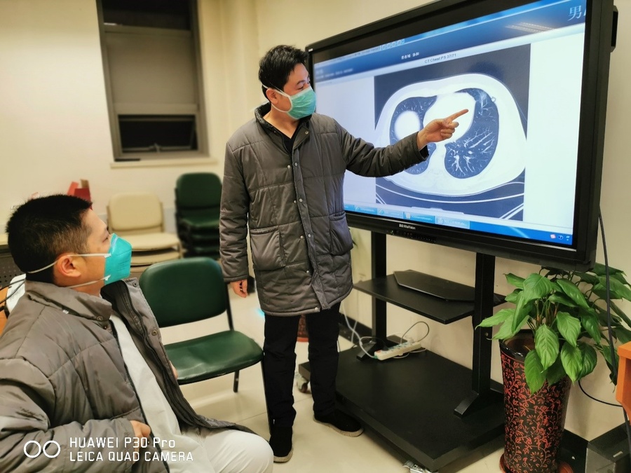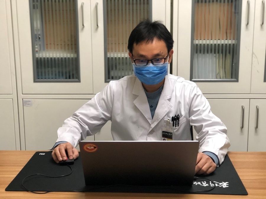 2月,北京协和医院发热门诊清洁区。右边为徐军副主任,对留观区的留观病人远程在线查房。