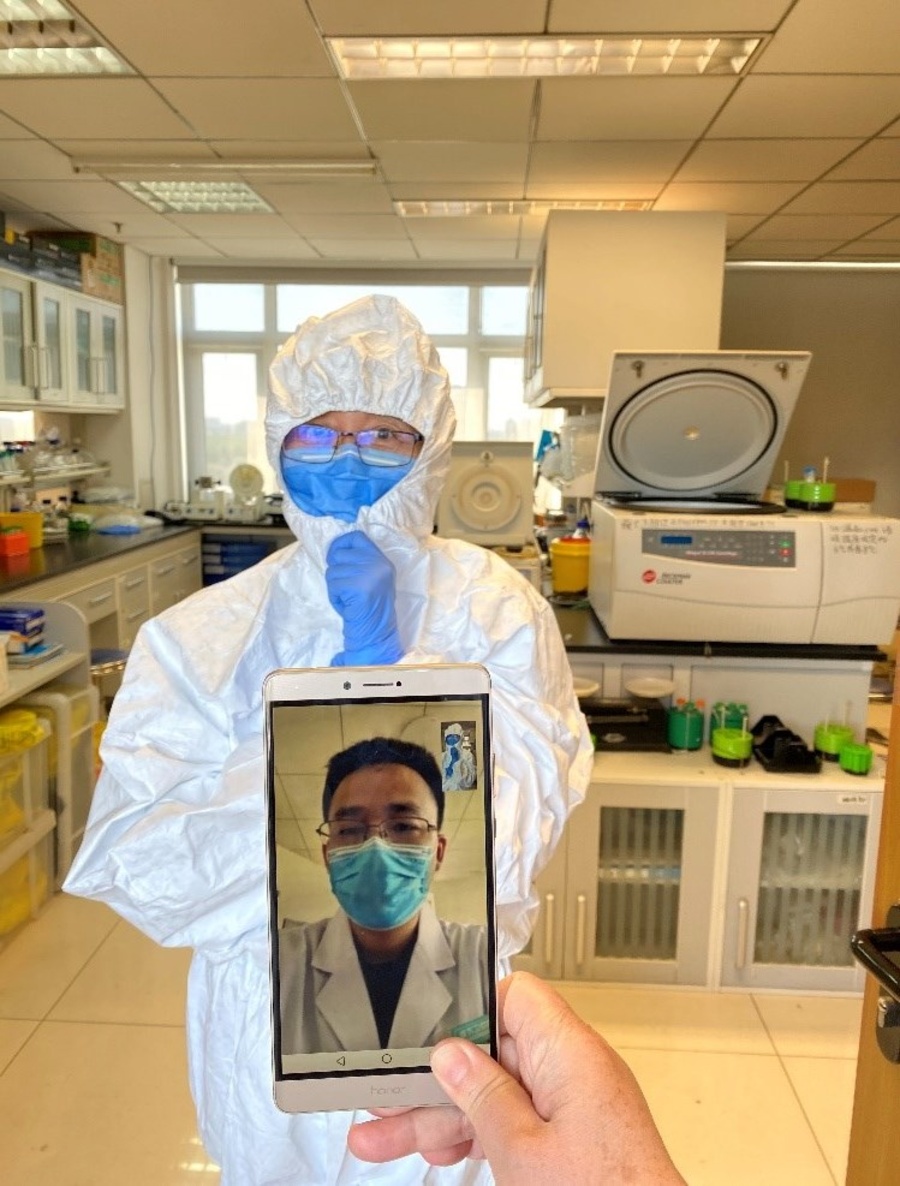 2月,中国医学科学院肿瘤医院分子肿瘤学国家重点实验室,肿瘤信息支社主委曲春枫向远在武汉抗“疫”一线的儿子反复演示如何穿戴防护服
