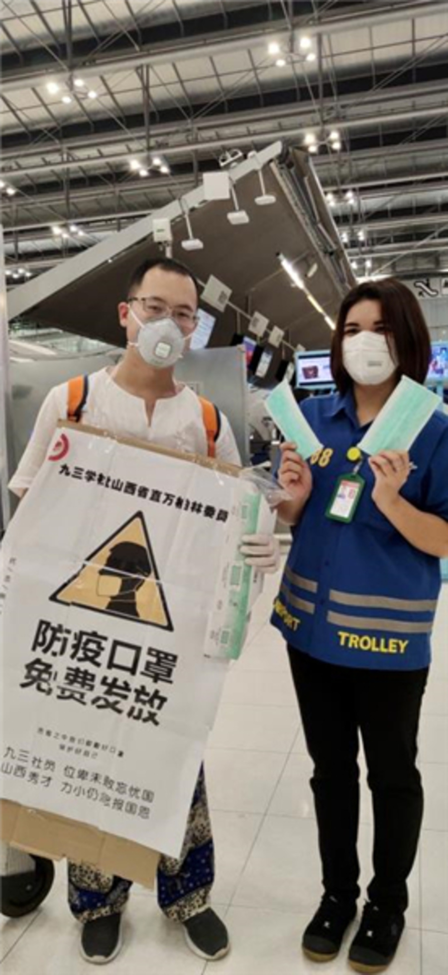 武汉封城,社会各界积极驰援……疫情迅猛蔓延天南海北。他想到返华乘客的安危,便决定先去机场,把买到的口罩赠予他们。然而,在机场发放物品,可不是一拍脑门那么简单。情急之下,他向中国驻泰国大使馆和国内九三学社求助,得到了两级组织大力支持,他更有底气、更有信心。