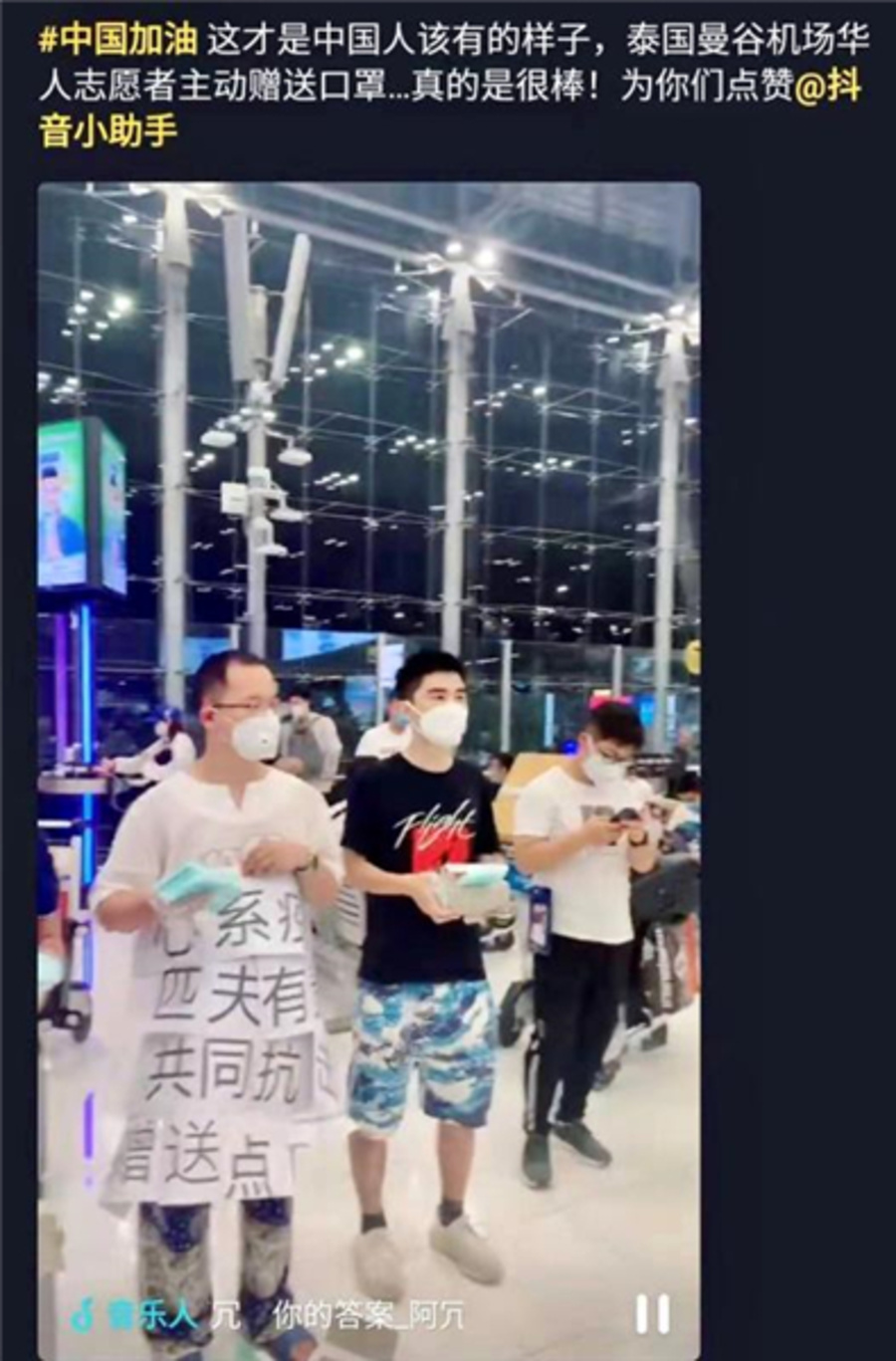 截至1月29日晚,梁芮铭在机场累计送出口罩16000个,而他在曼谷食宿、包车、机票作废损失、购买口罩等花销约15000元。目前,他仍坚持在曼谷赠送爱心口罩,站成了一道温暖风景线。