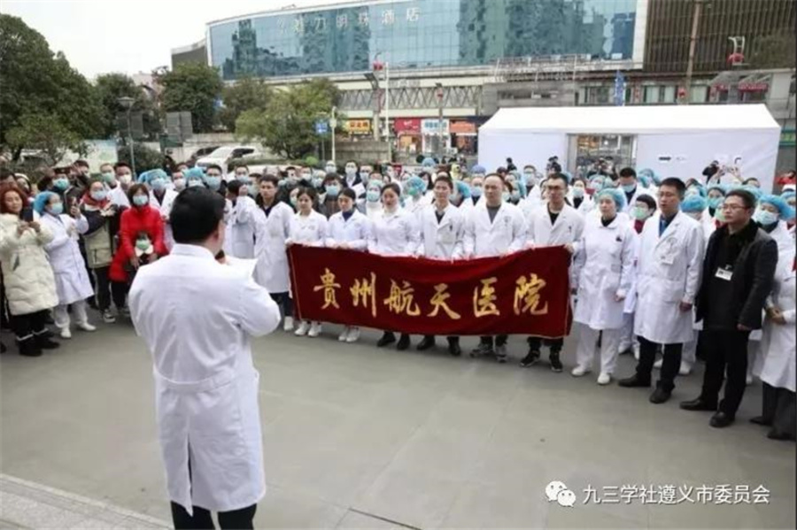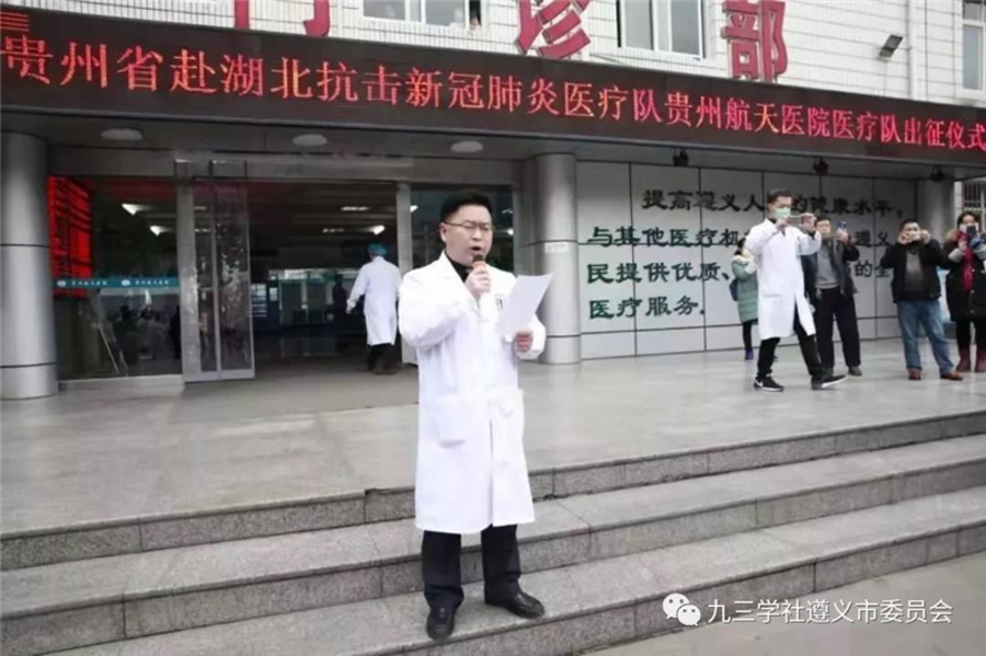 工作在遵义医科大学一、二附属医院、贵州航天医院、遵义市第一人民医院、遵义市第五人民医院、遵义市骨科医院、播州区人民医院、桐梓县人民医院、桐梓县中医院、赤水市人民医院的九三学社社员都坚守岗位,战斗在防控阻击一线。社遵义市委副主委冯春林,社员张伟德,作为贵州航天医院院长、业务副院长,春节期间带领全院医护人员坚守在抗击疫情第一线,在党中央、国务院发出驰援武汉的号召时,第一时间作出响应,组织由呼吸内科、感染科、重症医学科专家医师组成医疗团队“逆行”鄂州,奔赴抗疫战场!