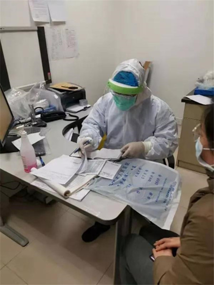 惠山区疾控中心、社员张激从年三十开始从未休息一天,值班做好各种举报和咨询的回复,不分昼夜立刻开展流行病学调查、采样、消杀、后勤保障。
