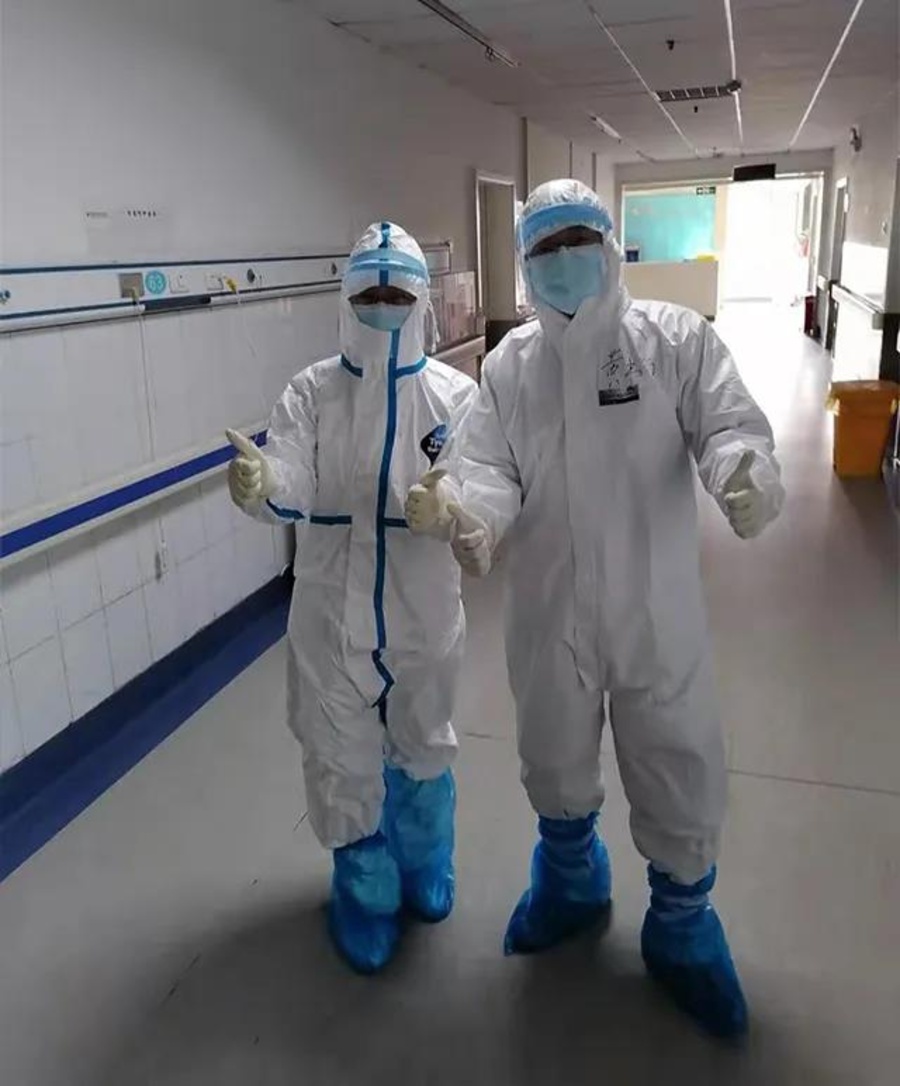 每日,穿着厚重的防护服穿梭于病房-护理站-医生办公室,问病历、写病历、向患者告知病情及配合专科医生抢救重症,40多天的抗疫工作紧张忙碌。