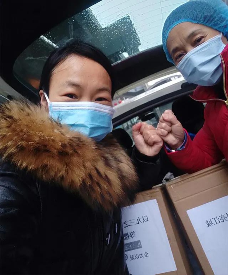 马卿莲(左一)运送抗疫物资