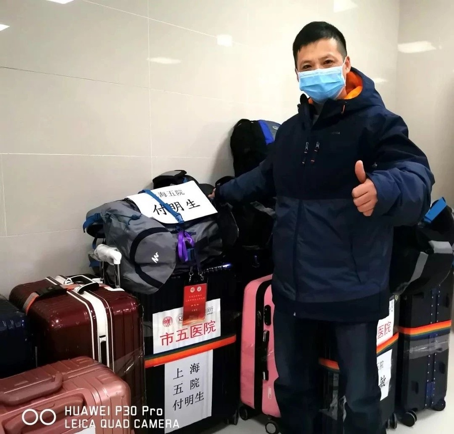 2月19日,付明生随上海第八批援鄂医疗队出发驰援武汉,支援雷神山医院。非典时,付明生就曾作为医疗队一员援助甘肃兰州。出征武汉,他说:“这次危险很大,病毒的传染性更强,肯定会有担心,说不担心都是虚话。可是,这是医生的职责所在。疫情当前,我们就是战士,必须冲锋在前,到最需要的地方去。”