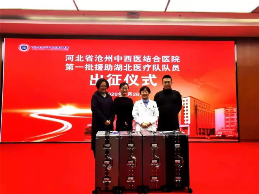 沧州中西医结合医院呼吸科副主任张丽作为沧州市第一批援助湖北医疗队,1月26日赶赴湖北。出发前,作为本院医疗队队长,她写下请战书:“若有战,召必应,战必胜!”由于行动突然,她连午饭都来不及吃,带着盒饭紧急出发了。张丽说:“作为普通人,我们不能抛弃七情六欲;但是作为白衣战士,在人民需要的时刻,我们必须勇往直前!”九三学社沧州市委主委郑新平临行前叮嘱张丽:听从召唤、履行天职、不辱使命、平安归来,坚决打赢防治冠状病毒感染攻坚战,全体九三人都是你的后援兵!
