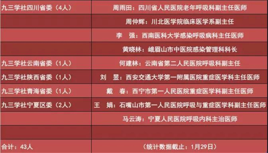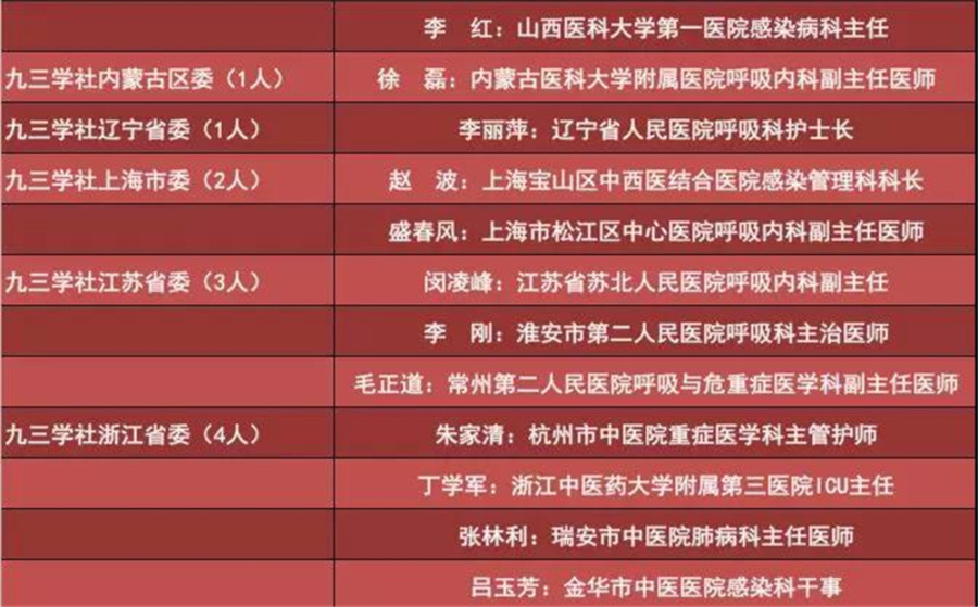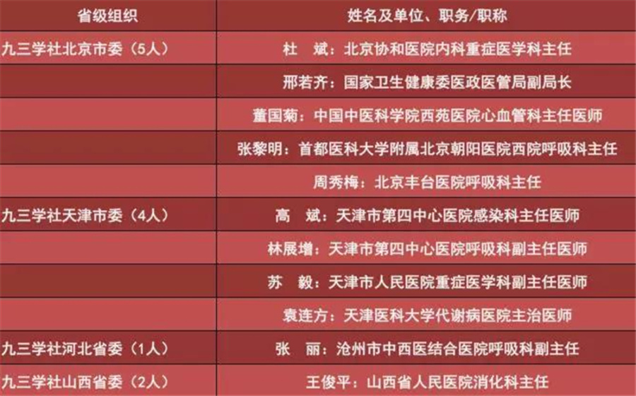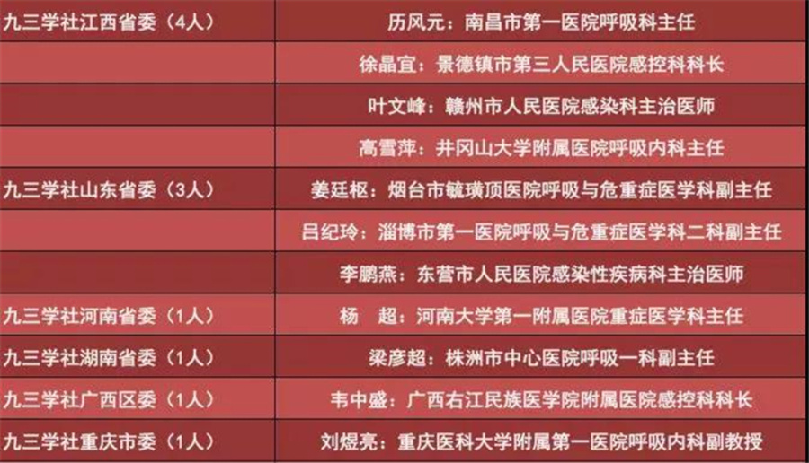 ●九三学社社员援鄂一线光荣榜●